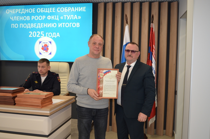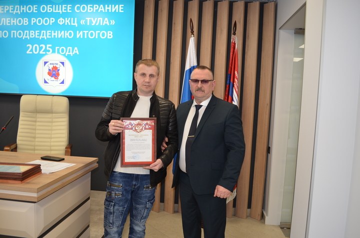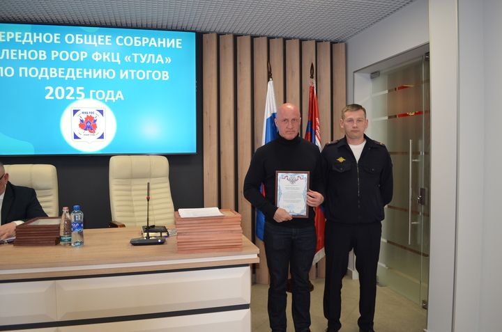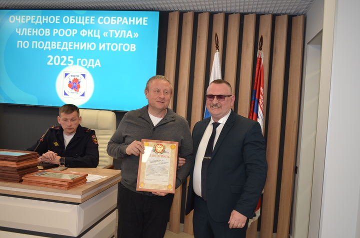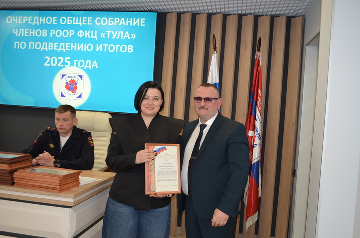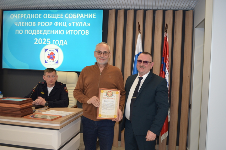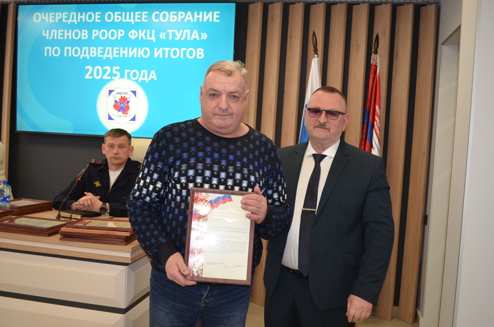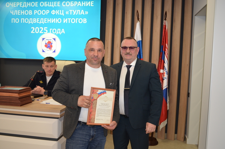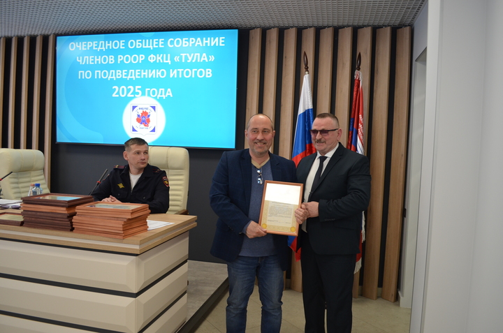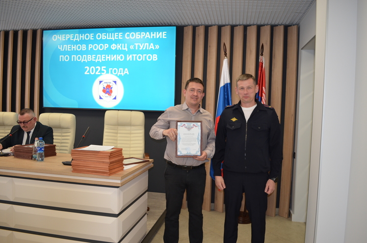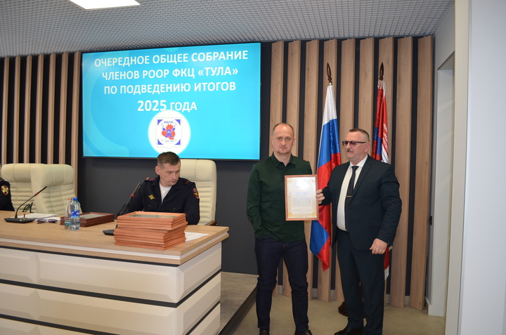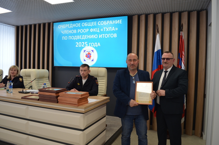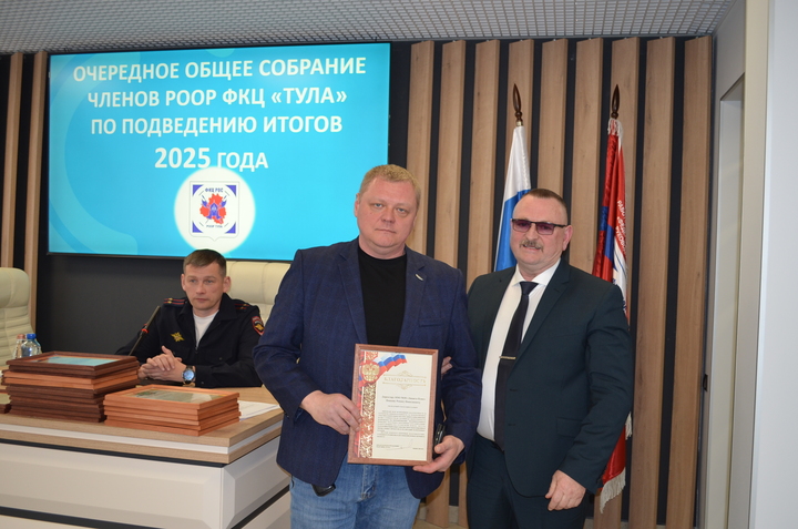 31 марта 2026 года состоялось очередное общее собрание членов РООР ФКЦ «Тула», на котором подвели итоги деятельности Объединения в 2025 году. На данном собрании присутствовали руководители частных охранных организаций- членов РООР, Тимофеева Е. А.- подполковник полиции, начальник отдела лицензионно-разрешительной работы по городу Туле Управления Росгвардии по Тульской области, Шпакевич В. А.- подполковник полиции, заместитель начальника управления по охране общественного порядка УМВД России по Тульской области.